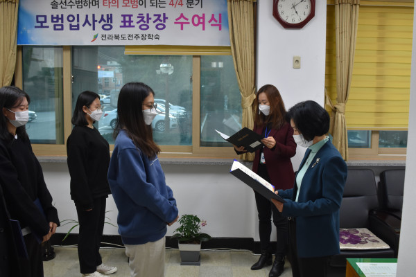 11월 24일 4/4분기 모범상 입사생 표창이 있었습니다.