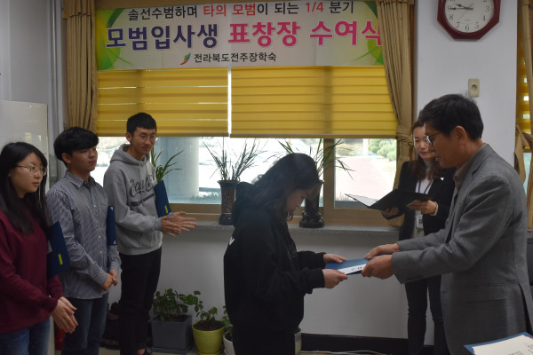 1분기 수여자 : 김새빈, 최원준, 한아름, 김지윤, 조민경 입사생 축하합니다.