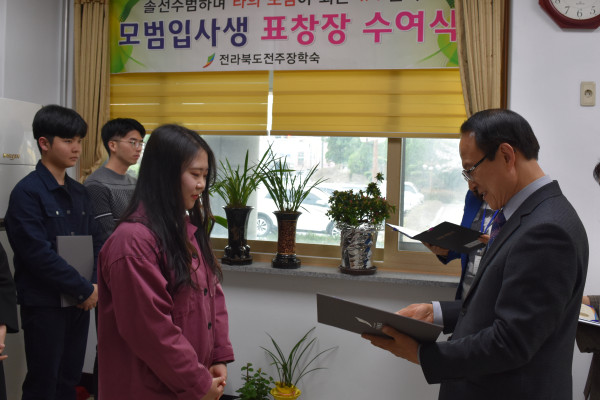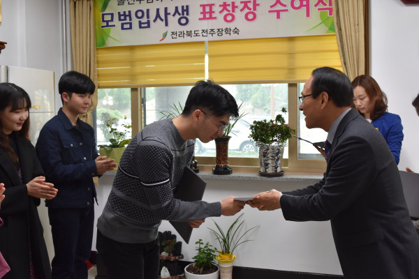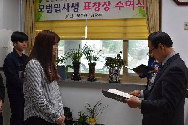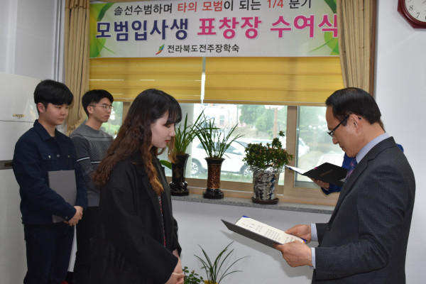 1/4분기 모범상 표창 페이지 정보 작성자 전주장학숙 댓글 0건 조회 1,240회 작성일 18-03-29 17:30 본문 3월 29일 2018 1/4분기 모범상 표창이 있었습니다. 수상한 입사생들 축하드립니다. 목록 이전글 희망풍차나눔걷기 다음글 안골 노인복지회관 배식봉사활동 댓글목록 댓글목록 등록된 댓글이 없습니다.