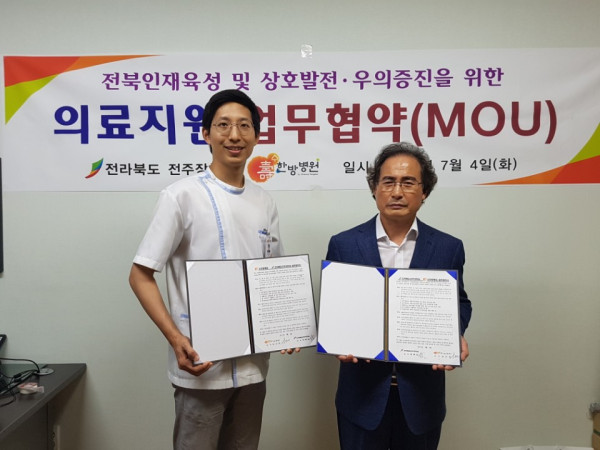 7월 4일 전라북도 전주장학숙과 수한방병원 업무협약(MOU)을 체결하였다.