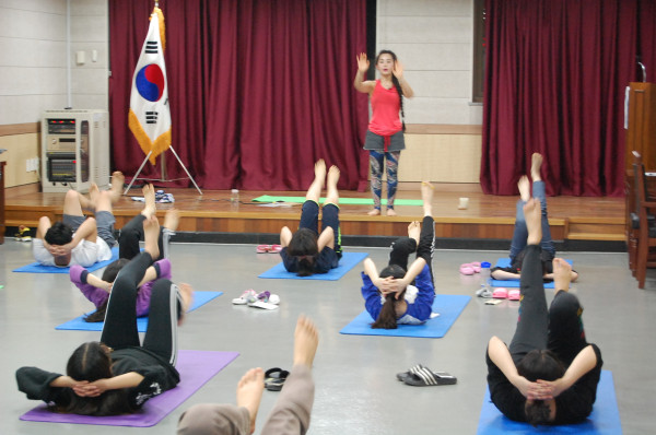 매주 수요일 전주장학숙 입사생들을 위하여 요가 강좌가 운영되고 있습니다.