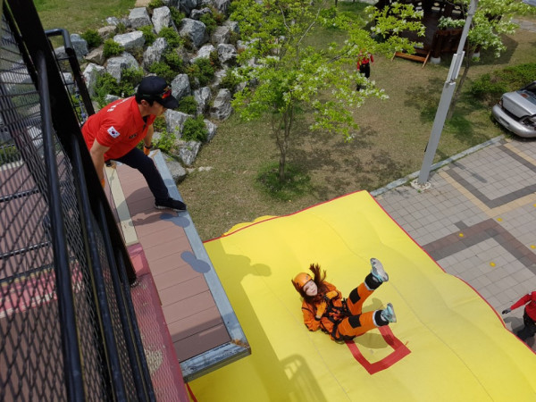 ○ 체험내용 : 무동력승강기, 완강기체험, 고공횡단체험, 공기안전매트, 피난미끄럼틀체험