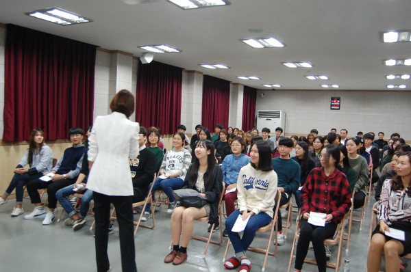 하반기 교양특강이 입사생들과 직원들이 모인 가운데