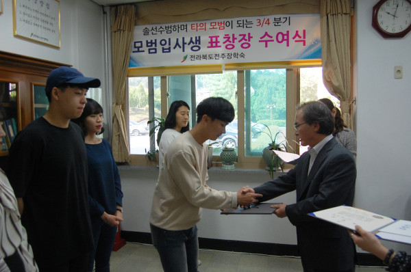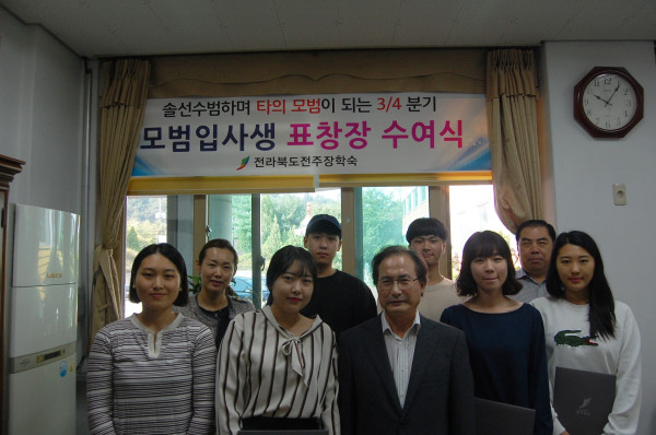 입사생들에게 귀감이 되고 있는 입사생을 선발