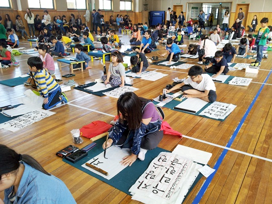 전주장학숙에서 인근 초등학생을 대상으로 진행하고 있는 방과 후 서예학습에