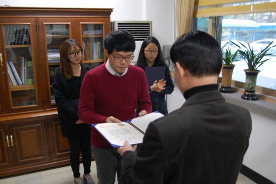 입사생들에게 장학금을 수여하는 수여식이 있었습니다.