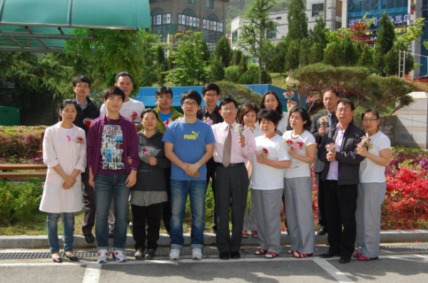 스승의 날 기념 축하행사를 가지고 앞마당에서 찍은 기념사진입니다.