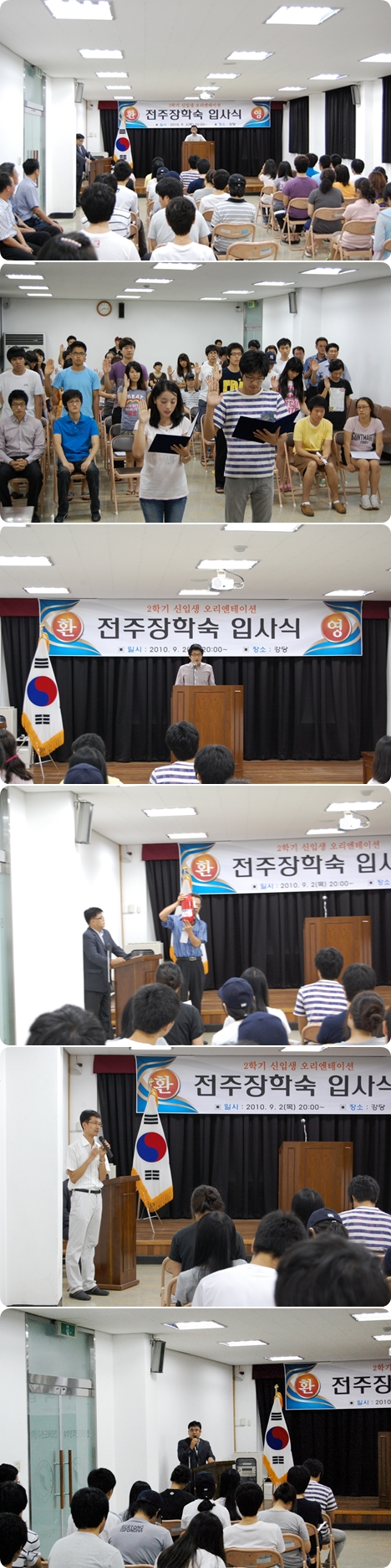2010년도 2학기 신입생 입사식이 저녁 8시 본학숙 강당에서 있었습니다.