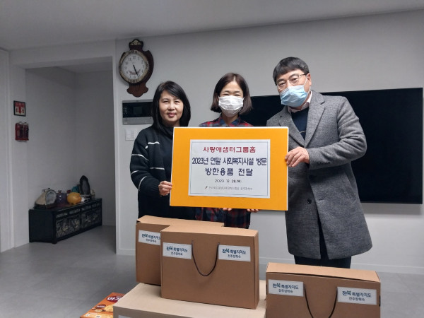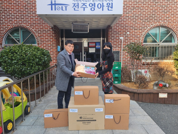 2023년 연말 사회복시실설 방한용품 전달 페이지 정보 작성자 관리자 댓글 0건 조회 862회 작성일 24-01-03 16:27 본문 전주영아원과 사랑애샘터그룹홈에 물품 기부 목록 이전글 2024년 체력단련실 체육용품 입고 다음글 2023년 총동기회 송년의밤 댓글목록 댓글목록 등록된 댓글이 없습니다.