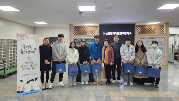 2024년 졸업생 환송회 페이지 정보 작성자 관리자 댓글 0건 조회 1,146회 작성일 24-02-05 18:45 본문 2024년 졸업생 환송회 목록 이전글 2024년 상반기 장학증서수여식 다음글 2024년 국가고시 응시자 격려행사 댓글목록 댓글목록 등록된 댓글이 없습니다.