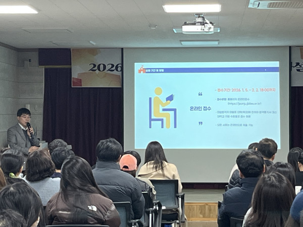 2026 전북(전주, 서울)장학숙 입사설명회 페이지 정보 작성자 관리자 댓글 0건 조회 25회 작성일 26-01-12 16:08 본문 전북(전주, 서울)장학숙 입사설명회 - 2026. 1. 10.(토) 목록 다음글 2025년 I:EUM 자율회 포토부스 행사 댓글목록 댓글목록 등록된 댓글이 없습니다.
