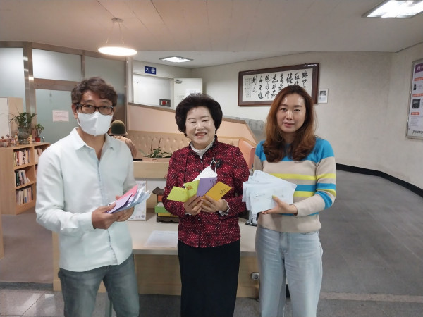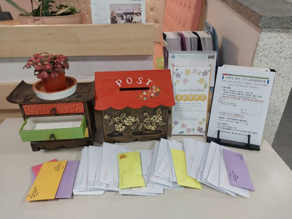 2023년 사랑의 편지쓰기 페이지 정보 작성자 관리자 댓글 0건 조회 809회 작성일 23-05-13 23:32 본문 가정의 달을 맞아 부모님과 선생님등 고마운 분께 감사의 마음을 편지에 담아 전했습니다. 목록 이전글 2023년 아중호수 트래킹 행사 다음글 2023년 어버이날 행사 댓글목록 댓글목록 등록된 댓글이 없습니다.