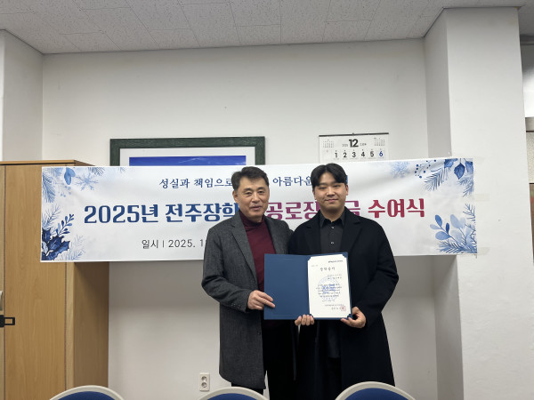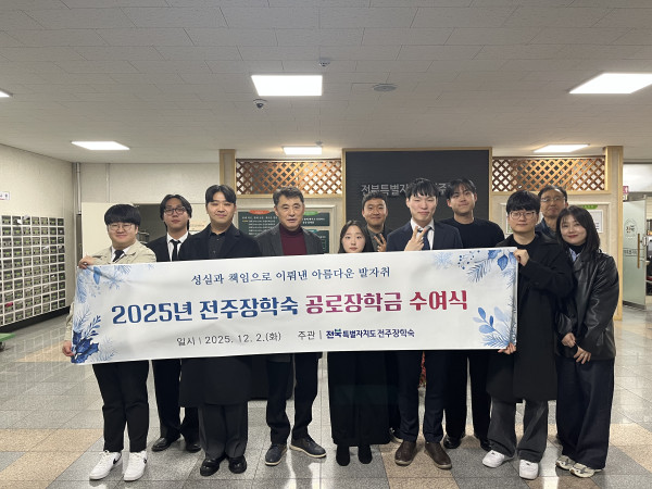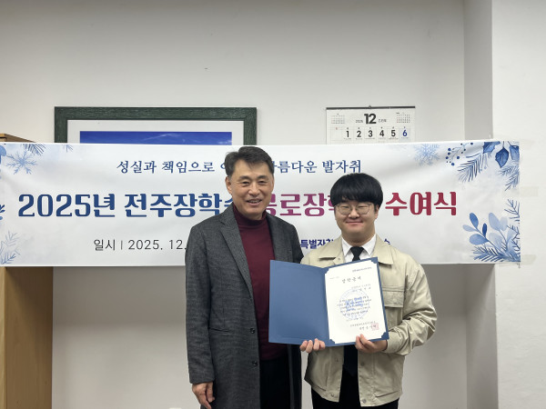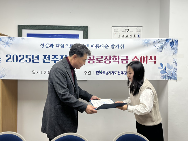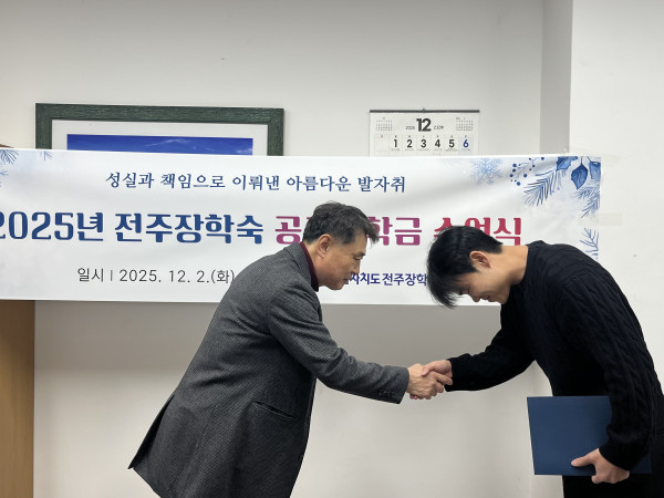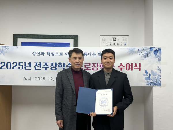 2025년 전주장학숙 공로장학금 수여식 페이지 정보 작성자 관리자 댓글 0건 조회 118회 작성일 25-12-02 20:37 본문 2025년 전주장학숙 공로장학금 수여식 - 2025. 12. 2. 목록 이전글 2025년 사랑의 연탄봉사 다음글 2025년 하반기 모범상 표창 댓글목록 댓글목록 등록된 댓글이 없습니다.