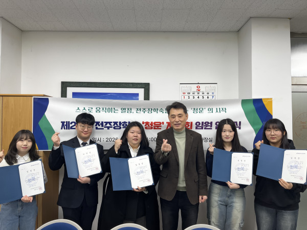 2026년 제28대 청운 자율회 임명식 페이지 정보 작성자 관리자 댓글 0건 조회 109회 작성일 26-02-23 15:28 본문 2026년 제287대 청운 자율회 임명식 목록 다음글 2026년 겨울방학 지역아동돌봄캠프 댓글목록 댓글목록 등록된 댓글이 없습니다.