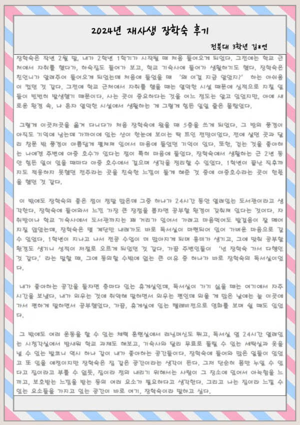 [2024년 재사생 장학숙 생활 후기] 페이지 정보 작성자 관리자 댓글 0건 조회 193회 작성일 25-09-08 16:42 본문 [2024년 재사생 장학숙 생활 후기] 목록 이전글 [2024년 재사생 장학숙 생활 후기] 다음글 [2024년 재사생 장학숙 생활 후기] 댓글목록 댓글목록 등록된 댓글이 없습니다.