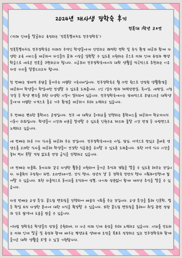 [2024년 재사생 장학숙 생활 후기] 페이지 정보 작성자 관리자 댓글 0건 조회 178회 작성일 25-09-08 16:42 본문 [2024년 재사생 장학숙 생활 후기] 목록 이전글 [2024년 재사생 장학숙 생활 후기] 다음글 [2024년 재사생 장학숙 생활 후기] 댓글목록 댓글목록 등록된 댓글이 없습니다.