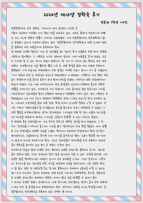 [2024년 재사생 장학숙 생활 후기] 페이지 정보 작성자 관리자 댓글 0건 조회 193회 작성일 25-09-08 16:43 본문 [2024년 재사생 장학숙 생활 후기] 목록 이전글 [2024년 재사생 장학숙 생활 후기] 다음글 [2024년 재사생 장학숙 생활 후기] 댓글목록 댓글목록 등록된 댓글이 없습니다.