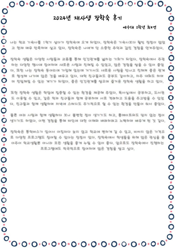 [2024년 재사생 장학숙 생활 후기] 페이지 정보 작성자 관리자 댓글 0건 조회 199회 작성일 25-09-08 16:36 본문 [2024년 재사생 장학숙 생활 후기] 목록 이전글 [2024년 재사생 장학숙 생활 후기] 다음글 [2024년 재사생 장학숙 생활 후기] 댓글목록 댓글목록 등록된 댓글이 없습니다.