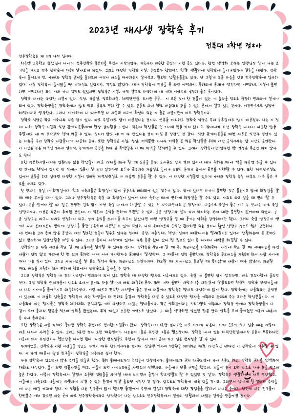 2023년 재사생 장학숙 생활 후기 페이지 정보 작성자 관리자 댓글 0건 조회 554회 작성일 24-11-26 16:40 본문 2023년 재사생 장학숙 생활 후기♥ 목록 이전글 2023년 재사생 장학숙 생활 후기 다음글 2023년 재사생 장학숙 생활 후기 댓글목록 댓글목록 등록된 댓글이 없습니다.