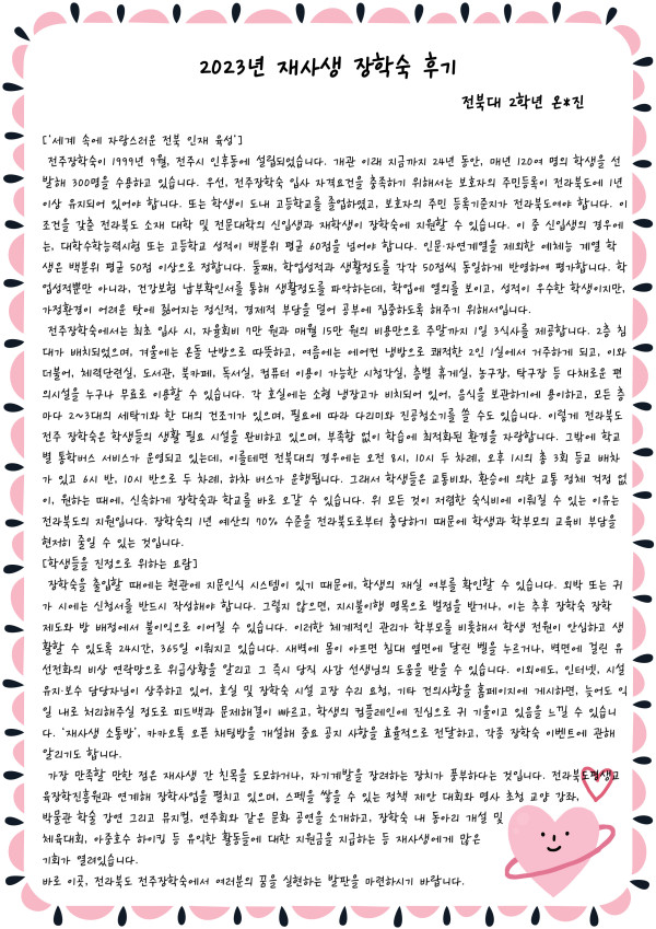 2023년 재사생 장학숙 생활 후기 페이지 정보 작성자 관리자 댓글 0건 조회 584회 작성일 24-11-26 16:40 본문 2023년 재사생 장학숙 생활 후기♥ 목록 이전글 2023년 재사생 장학숙 생활 후기 다음글 2023년 재사생 장학숙 생활 후기 댓글목록 댓글목록 등록된 댓글이 없습니다.