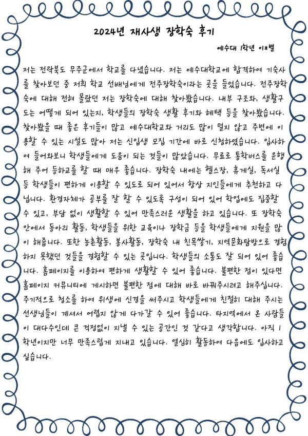 [2024년 재사생 장학숙 생활 후기] 페이지 정보 작성자 관리자 댓글 0건 조회 210회 작성일 25-09-08 16:45 본문 [2024년 재사생 장학숙 생활 후기] 목록 이전글 [2024년 재사생 장학숙 생활 후기] 다음글 [2024년 재사생 장학숙 생활 후기] 댓글목록 댓글목록 등록된 댓글이 없습니다.