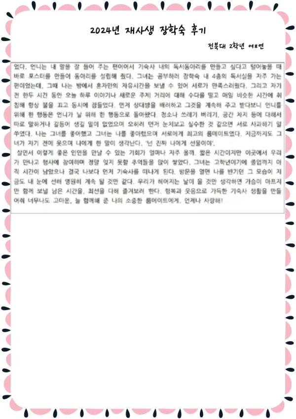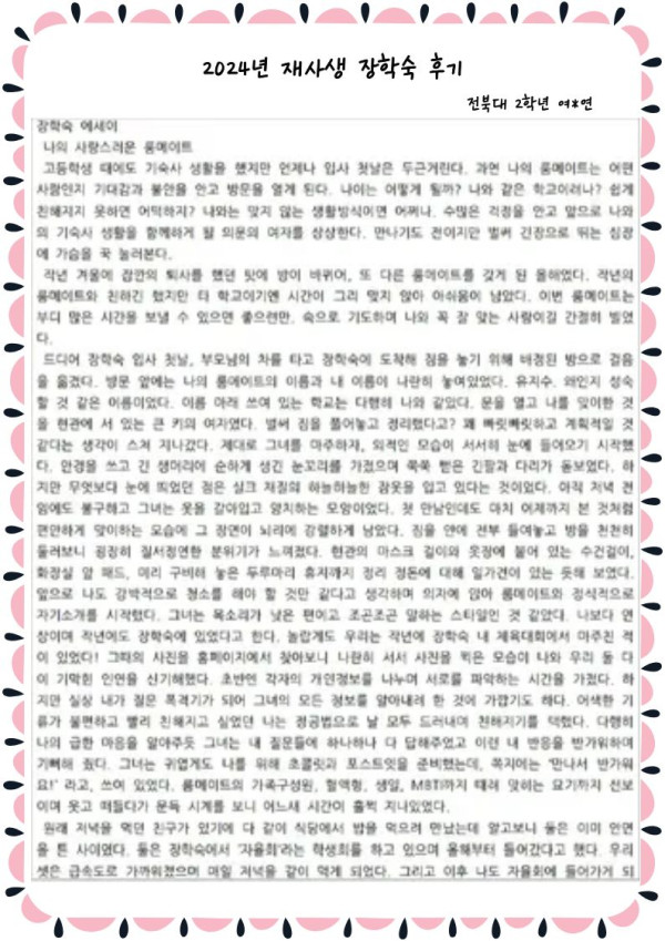 [2024년 재사생 장학숙 생활 후기] 페이지 정보 작성자 관리자 댓글 0건 조회 201회 작성일 25-09-08 16:46 본문 [2024년 재사생 장학숙 생활 후기] 목록 이전글 [2024년 재사생 장학숙 생활 후기] 다음글 [2024년 재사생 장학숙 생활 후기] 댓글목록 댓글목록 등록된 댓글이 없습니다.