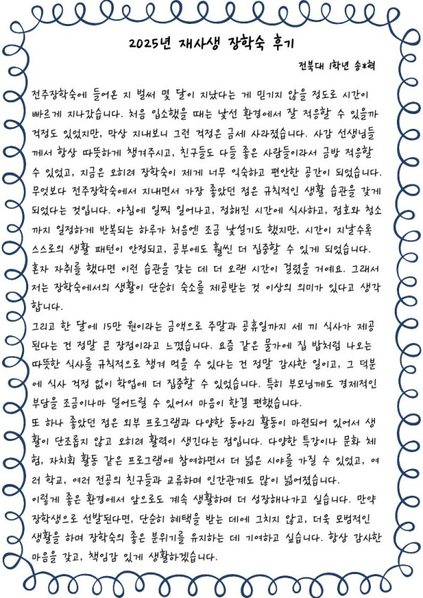 [2025년 재사생 장학숙 생활 후기] 페이지 정보 작성자 관리자 댓글 0건 조회 210회 작성일 25-09-09 15:42 본문 [2025년 재사생 장학숙 생활 후기] 목록 이전글 [2025년 재사생 장학숙 생활 후기] 다음글 [2025년 재사생 장학숙 생활 후기] 댓글목록 댓글목록 등록된 댓글이 없습니다.