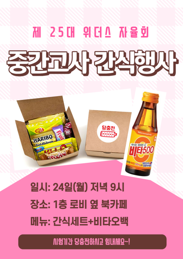시험기간을 위해 저희 위더스 자율회에서 달콤한 선물을 준비했습니다♡
