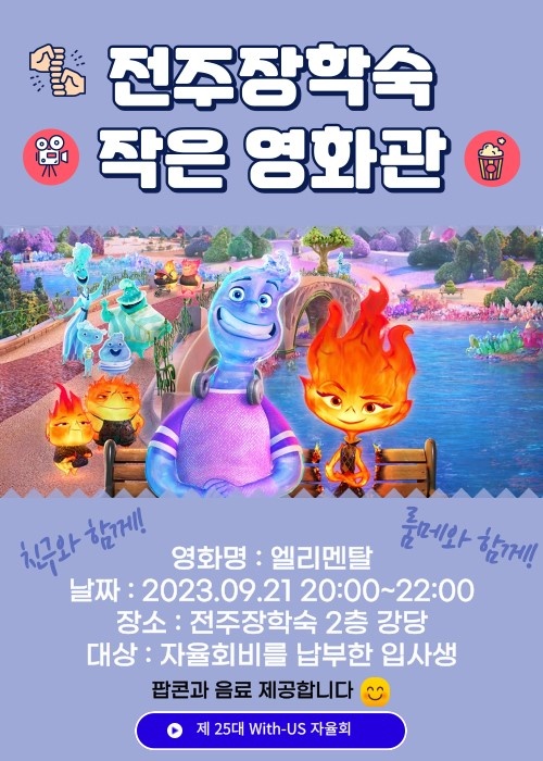 엘리멘탈, 다들 재밌으셨나요? 사담이지만 저는 중간에 사랑을 고백하는 장면에서 눈물이 찔끔 나더라고요.. ऀืົཽ≀ ͔ ͕̮ ऀืົཽ✧ 간간히 웃는 소리도 들리고 다들 몰입해서 시청하시는 모습을 보니 성공적인 자리가 되었다는 생각이 들어 뿌듯했습니다! 이번에도 좋은 추억 되셨길 바라며 다음에 있을 체육대회도 이처럼 행복한 기억이 되었으면 좋겠습니다ㅎㅎ 앞으로도 많은 참여와 관심 부탁드리며 또 다른 행사 기대해주세요~~