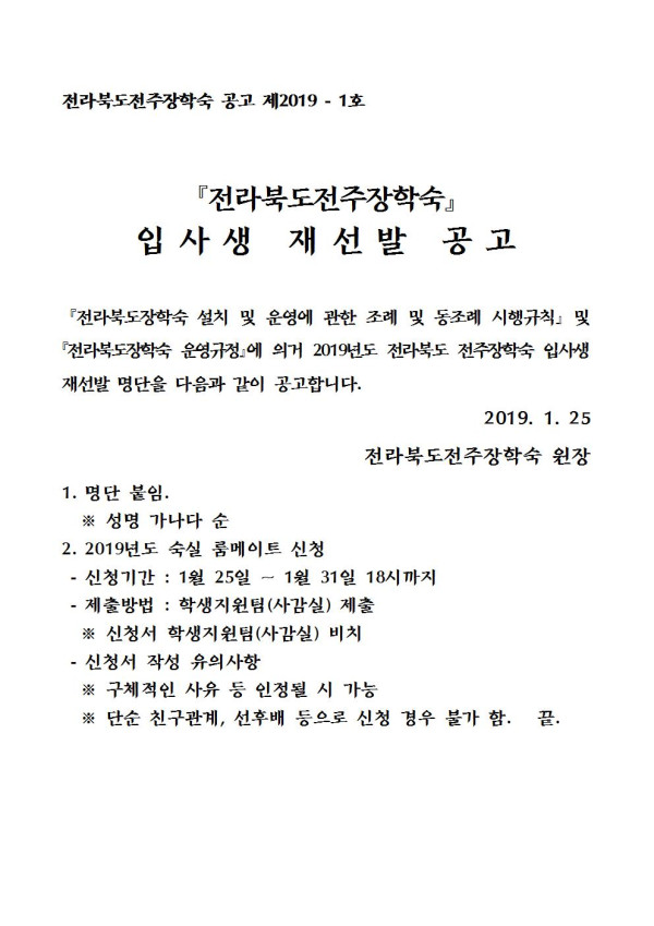 - 2019-재선발-합격자명단.xlsx (24.5K) 577회 다운로드 | DATE : 2019-01-25 11:10:49