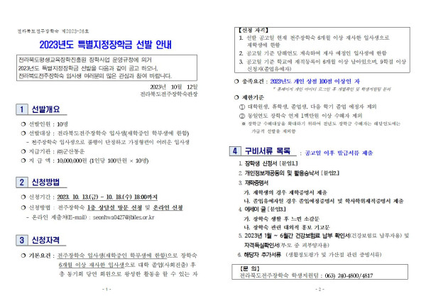 [2023년도 특별지정장학금 선발 안내]