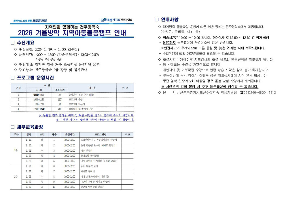 [2026년 겨울방학 지역아동돌봄캠프 합격자 발표 및 안내]