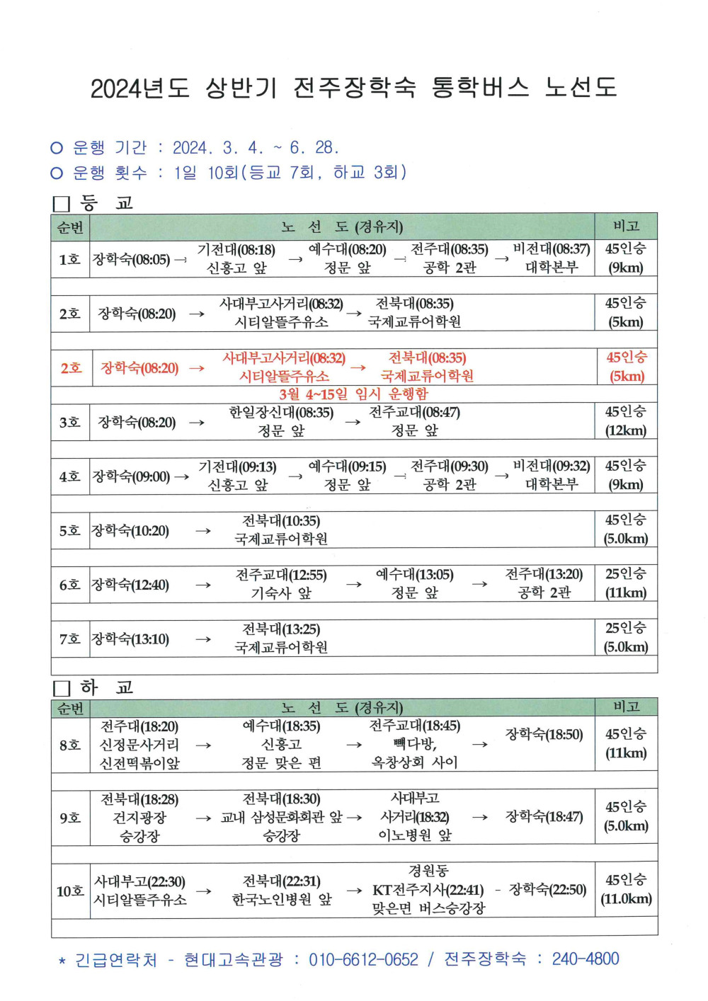 2024년 전주장학숙 통학버스 운행 안내