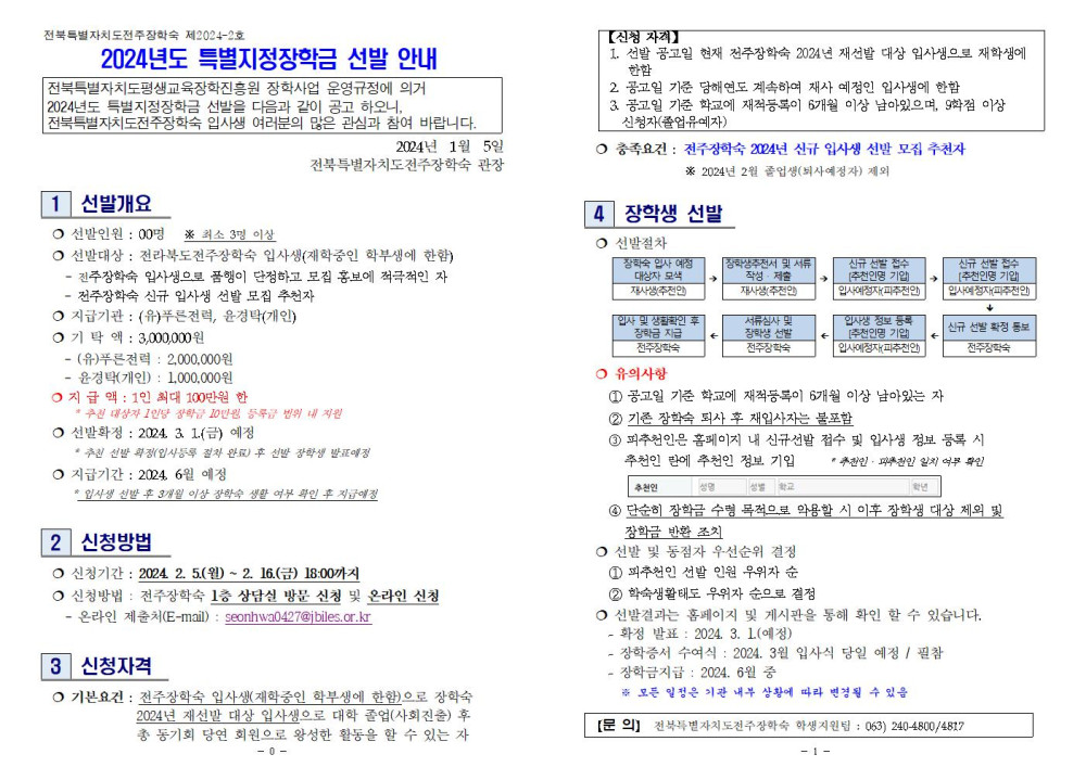 [2024년도 특별지정장학금 선발 안내]