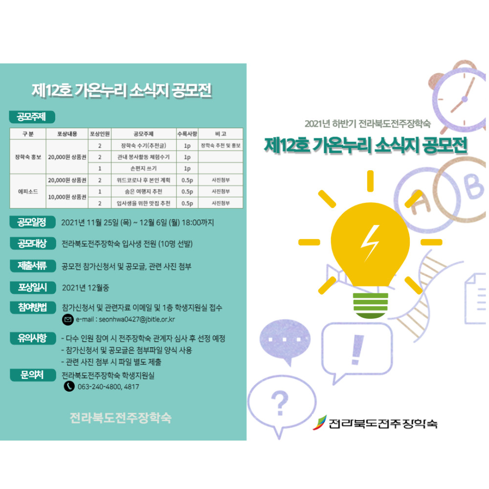 2021년도 하반기 전라북도전주장학숙 소식지 공모전