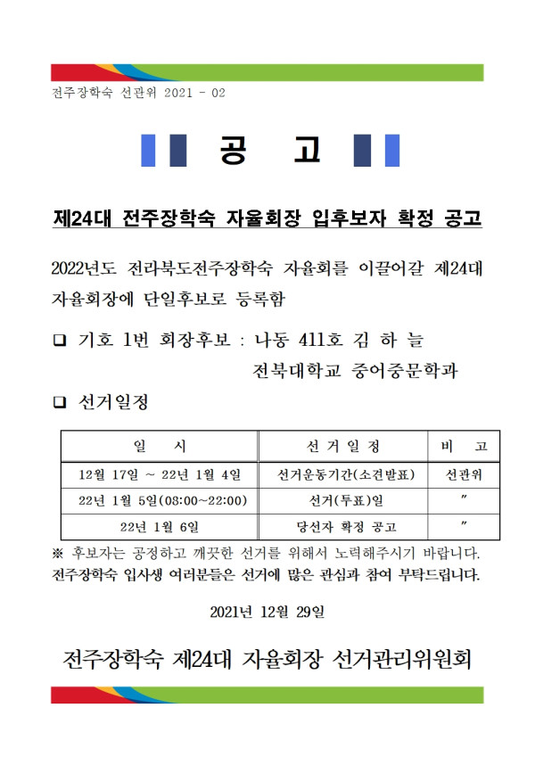 제24대 자율회장 입후보자 확정 공고