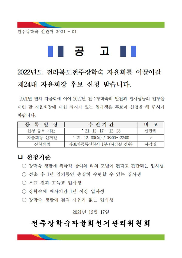 입사생 여러분들의 많은 관심과 참여 부탁드립니다.