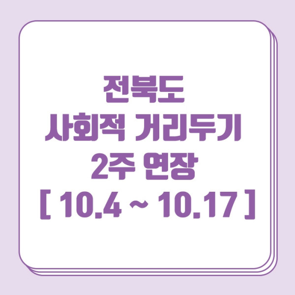 전북도, 사회적 거리두기 현 단계 2주 연장(10.4~10.17)