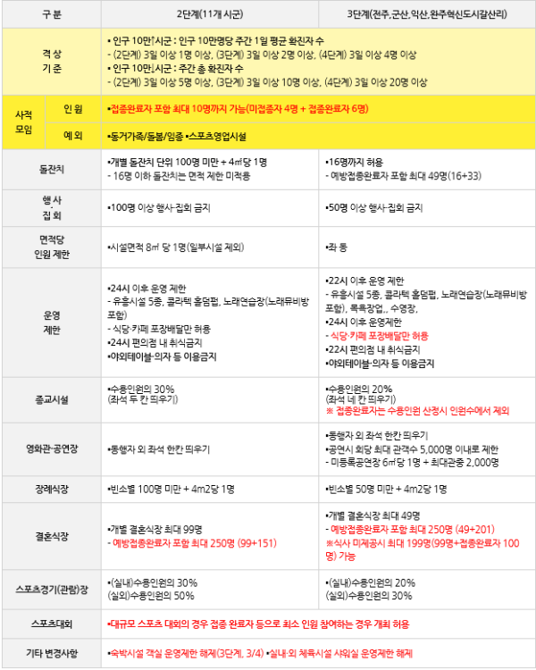 정부의 단계별 완화된 방역수칙을 따릅니다.