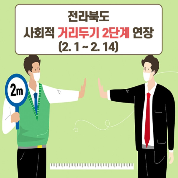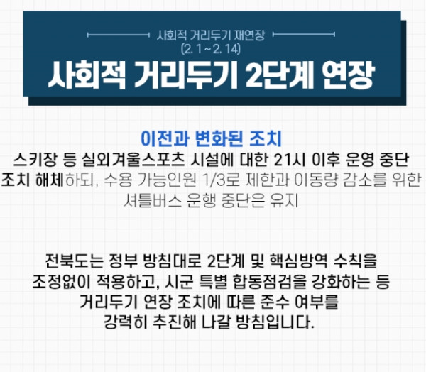 [출처] 전북도, 사회적 거리두기 2단계 연장('21.2. 1 ~ '21.2.14)
