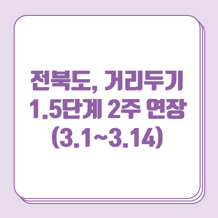 [출처] 전북도, 사회적 거리두기 1.5단계 2주간 연장(3.1~3.14)|작성자 전북의 재발견