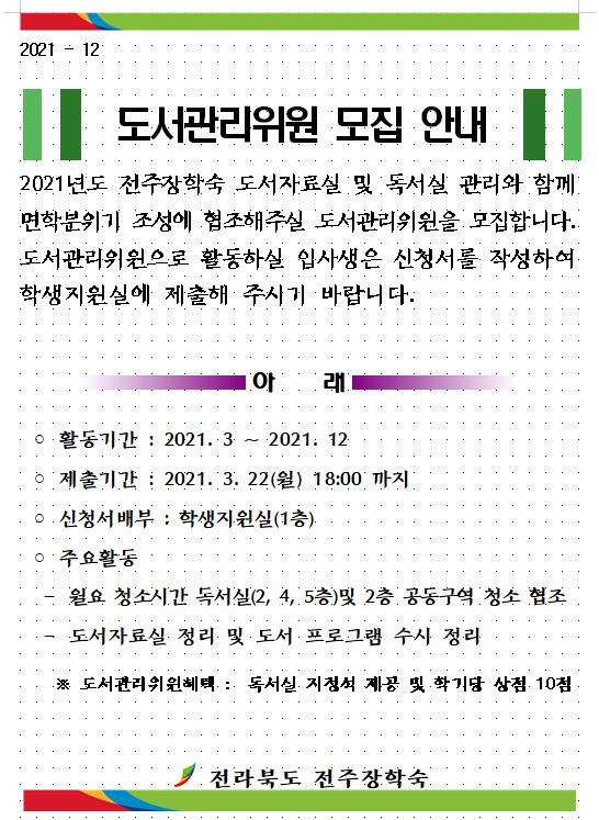 - 2021도서관리위원_신청서.hwp (160.0K) 48회 다운로드 | DATE : 2021-03-15 18:17:03