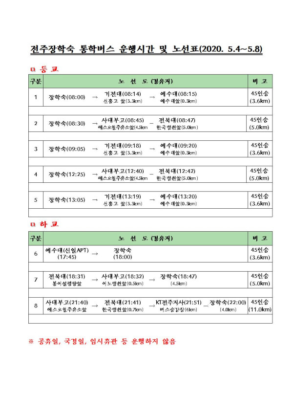 통학버스 노선표(5.4~5.8) 페이지 정보 작성자 관리자 댓글 0건 조회 3,972회 작성일 20-04-30 20:54 본문 . 목록 이전글 전주장학숙 통학버스 이용 안내문 다음글 학부모님께 안내드립니다. 댓글목록 댓글목록 등록된 댓글이 없습니다.