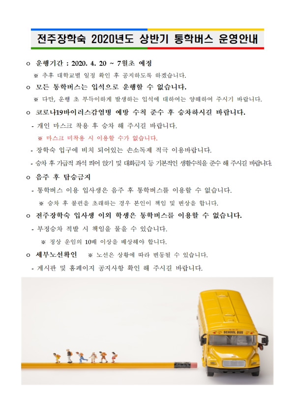 전주장학숙 통학버스 이용 안내문 페이지 정보 작성자 전주장학숙 댓글 0건 조회 3,961회 작성일 20-05-05 14:01 본문 . 목록 이전글 5월 정기 숙실 점검 및 안내 다음글 통학버스 노선표(5.4~5.8) 댓글목록 댓글목록 등록된 댓글이 없습니다.