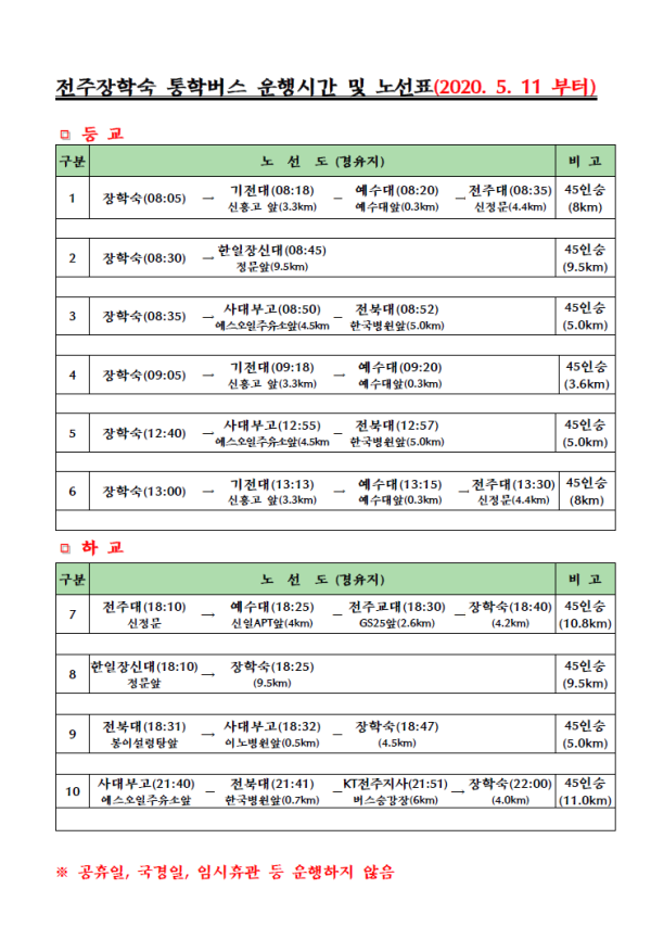 통학버스 운행시간 및 노선표( 5. 11부터) 페이지 정보 작성자 관리자 댓글 0건 조회 4,089회 작성일 20-05-08 17:39 본문 통학버스 운행시간 및 노선표(2020. 5. 11부터) 목록 이전글 생활 속 거리 두기 세부지침 다음글 생활방역, '생활 속 거리두기' 수칙을 지키며 건강을 지킵니다. 댓글목록 댓글목록 등록된 댓글이 없습니다.