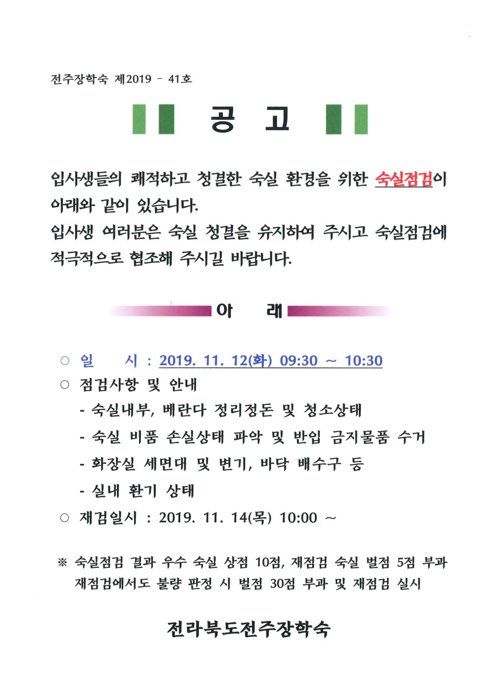 11월 정기 숙실점검 안내 페이지 정보 작성자 전주장학숙 댓글 0건 조회 4,566회 작성일 19-11-05 09:27 본문 목록 이전글 ISO 국제심사원 자격 안내 다음글 전주장학숙 총 동기회 동문 멘토링 프로그램 참여자 모집 댓글목록 댓글목록 등록된 댓글이 없습니다.