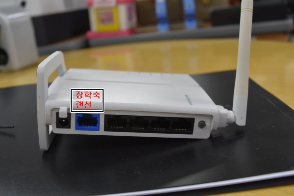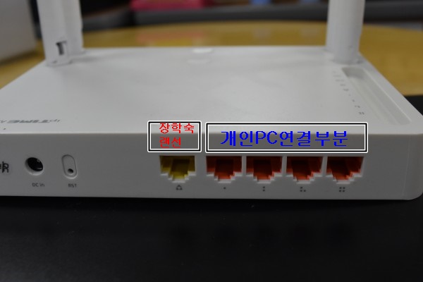 장학숙에서 지원하는 인터넷 랜선 : WAN(노란색,파란색) 먼저 연결한 후