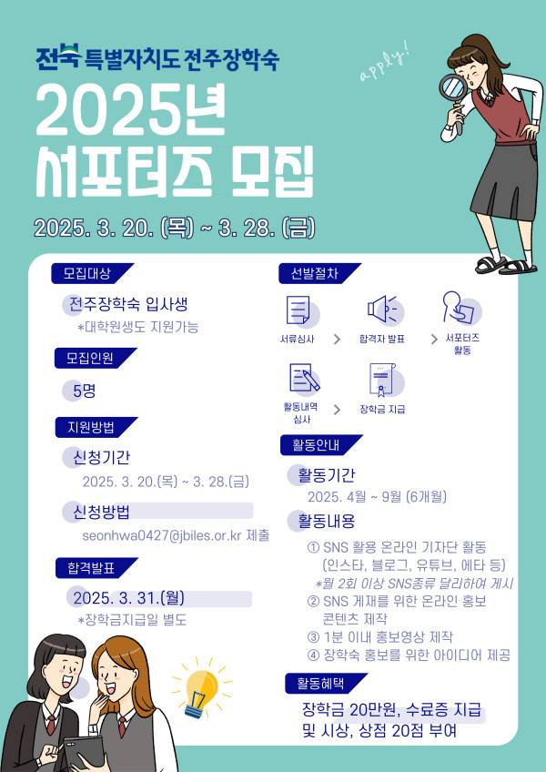 2025년 특별지정장학금 기관 홍보 서포터즈 모집 안내
