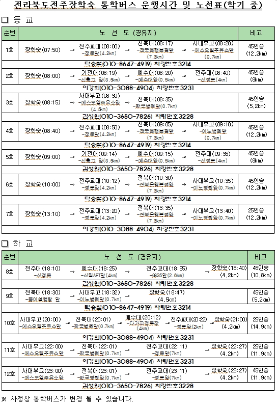 2014년도 학기중 등하교 버스시간표를 공지하니 이용에 불편이 없도록 바랍니다.