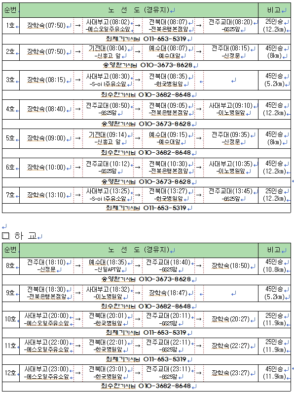 통학버스 시간 및 노선을 아래와 같이 변경하니 이용에 착오 없기 바랍니다.